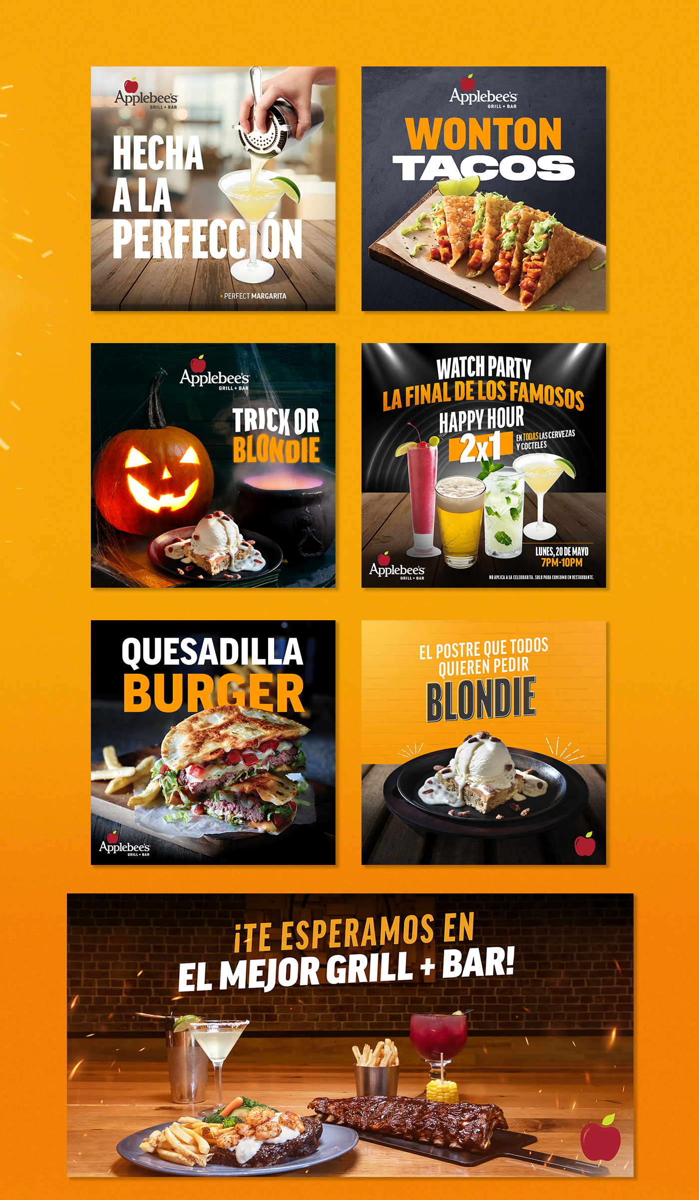 Diseño, composición y animación de piezas para la cuenta de Applebee's Puerto Rico.